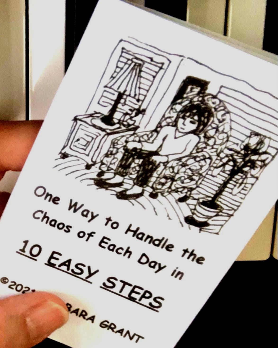 A practice to bring calm illustrated in a pocket-size booklet: "One Way to Handle the Chaos of Each Day in 10 Easy Steps"